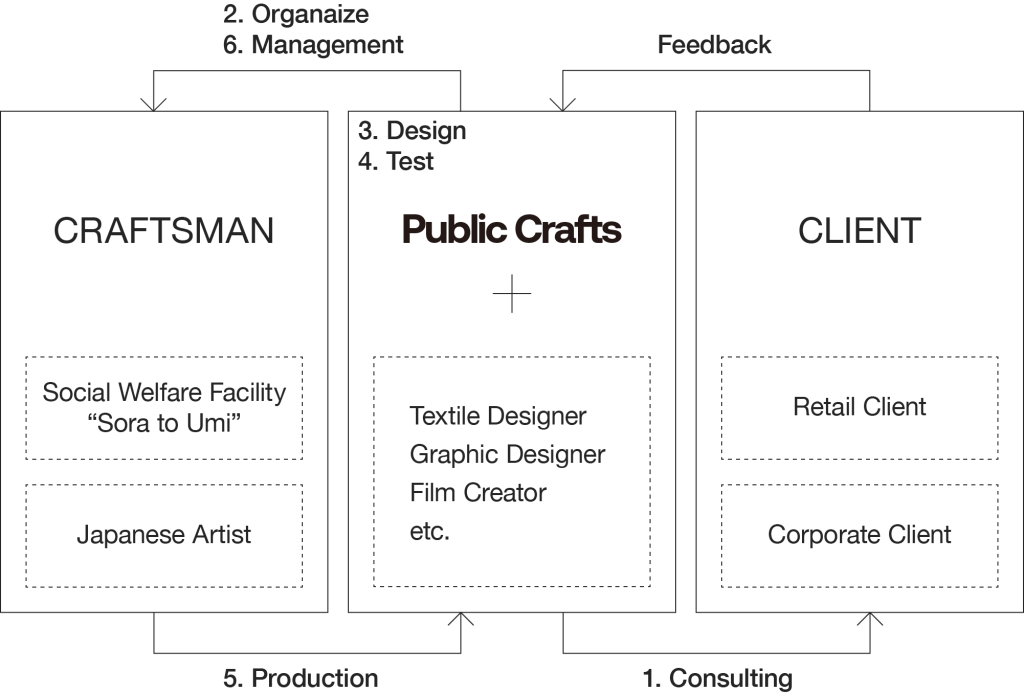 パブリッククラフツは、現代の生活の中で失われつつある日本の素材にフォーカスし、マテリアルのデザインおよび、マテリアルを通した空間構成を提案しています。自然と共に暮らしてきた日本人ならではの素材の扱い方を改めて見直し、表情豊かな日本のマテリアルを現代の空間に提案することを目指しています。